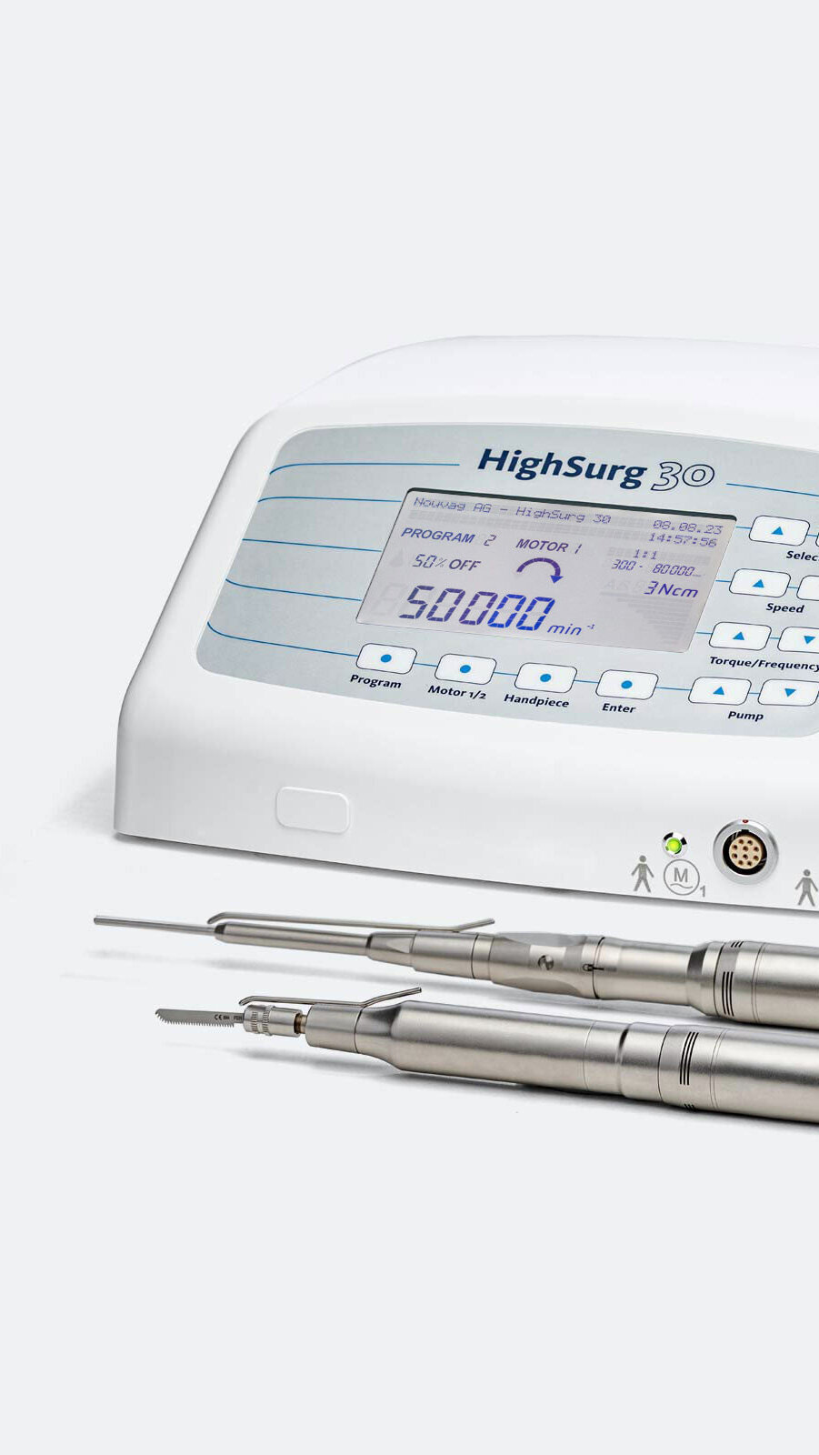 Successful rhinoplasty requires precise handpieces, as well as micro and oscillating saws that are perfectly matched to the specific requirements. Our HighSurg 30 offers top motorized performance, adaptable to individual requirements with our surgical handpieces. NOUVAG's rhinoplasty system delivers efficiency and precision.